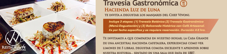 la gastronomía y la historia de una manera única. Hemos abierto un espacio transformador, en un ambiente en el cual podrás activar todos tus sentidos, desconectarte de la cotidianidad, respirar tranquilidad, gozar de un servicio afectuoso y degustar platos confeccionados artísticamente, donde Ventura conversará con ustedes acerca d solicitud de resre sus creaciones. Te invitamos a que compartas en nuestro hogar; la Casa Grande de una ancestral hacienda cafetalera, experiencias como ver limones de 5 libras, degustar comida excelente y aprender sobre nuestra historia... sentado en una sala que data de 1887.
